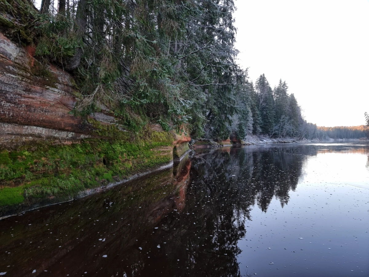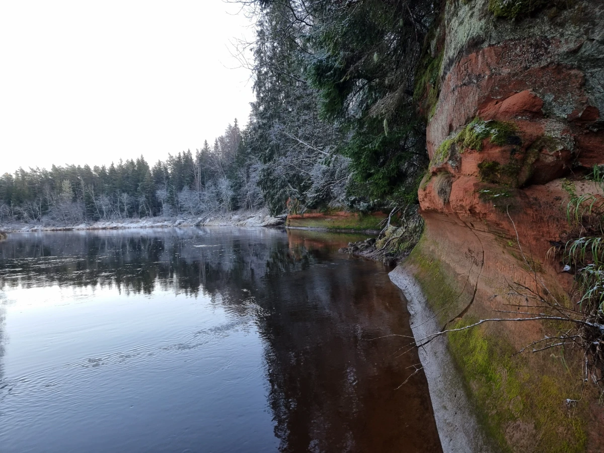 Cēsis ir jau daudzus kilometrus aiz muguras un tuvojas Amatas ieteka, līdz upes kreisajā krastā, asā līkumā, beidzot parādās nākamās klintis – Briedīšu iezis.