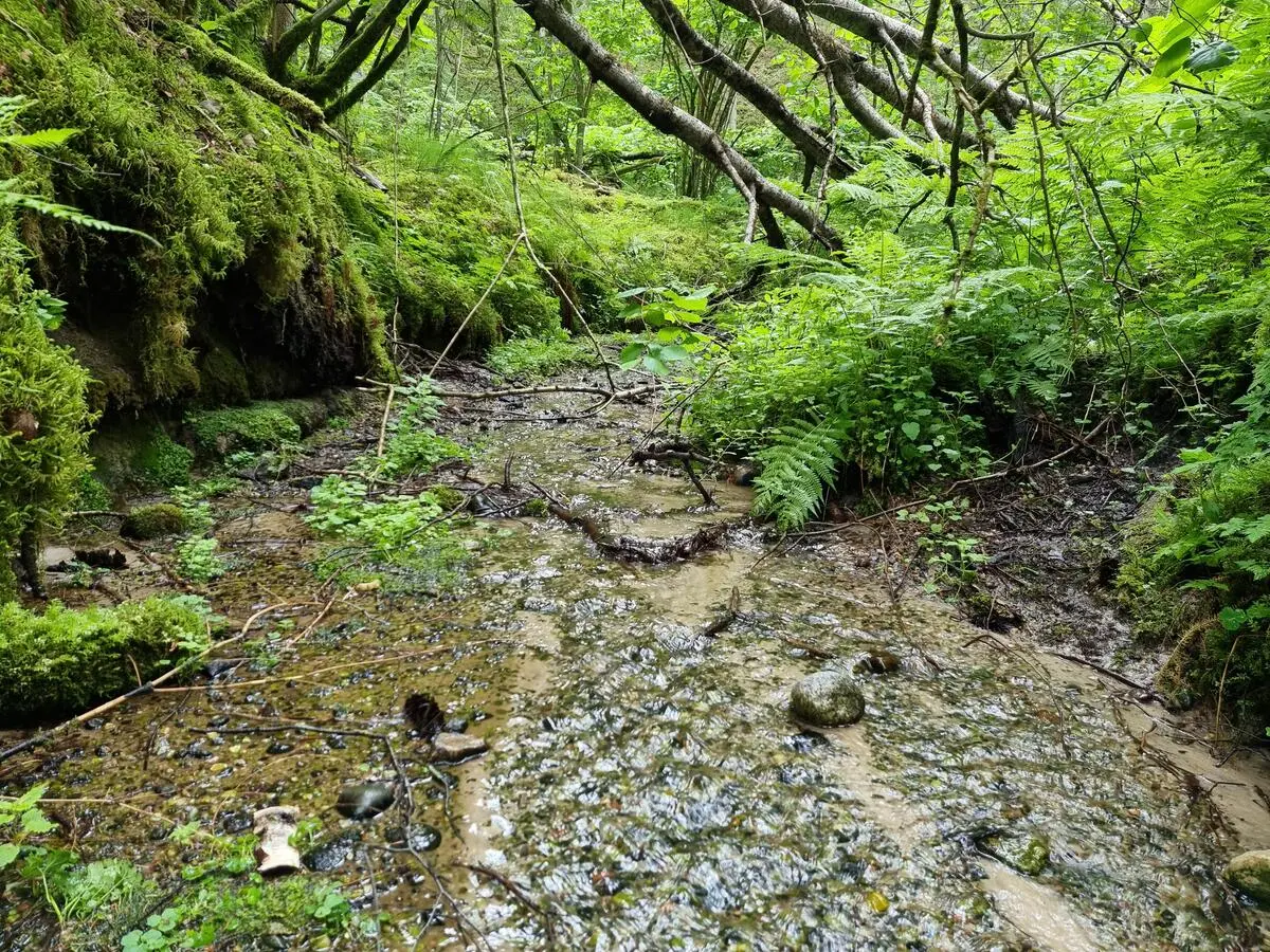 Dukuļu avotu veidotais strauts. 2025. gada jūnijs.
