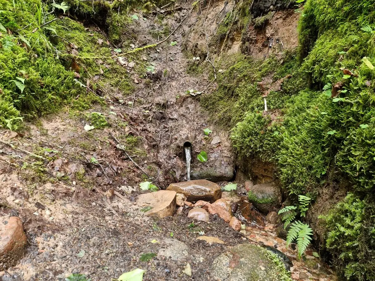 Dukuļu avoti, izteka kreisajā pusē. 2025. gada jūnijs.