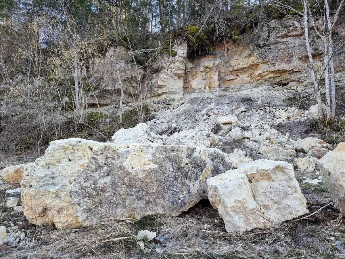 Lielu klintsbluķu nobrukums Gobdziņu klintīs. 2024. gada marts. / Gatis Pāvils, CC BY-SA 4.0