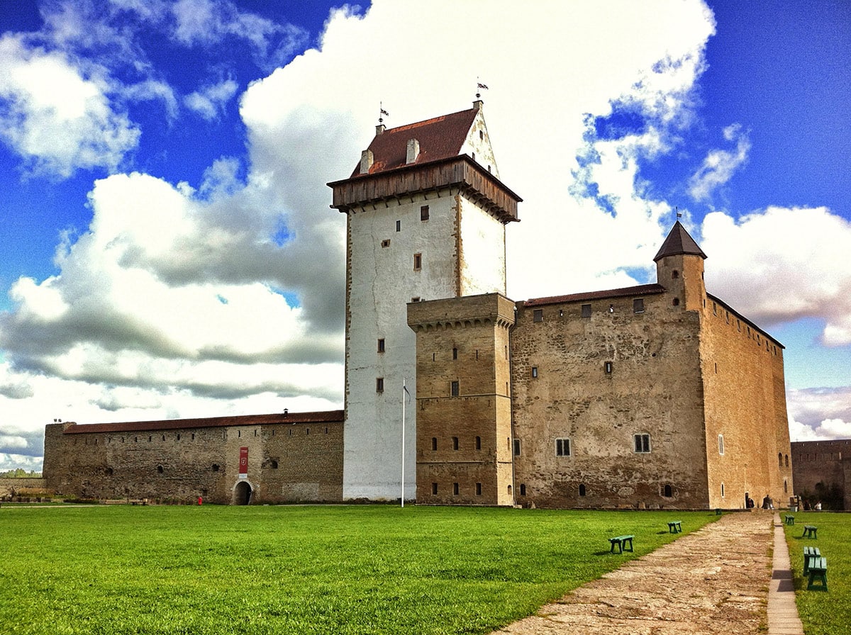 Iespaidīga, labi saglabājusies viduslaiku pils, sākotnēji celta jau 1256. gadā. Tagadējā būve tika celta galvenokārt 14. gadsimtā. Dominējošais pils elementd ir 51 m augstais Garā Hermaņa tornis. Pils atrodas iepretīm nedaudz vēlāk celtajam Ivangorodas cietoksnim Krievijas pusē.