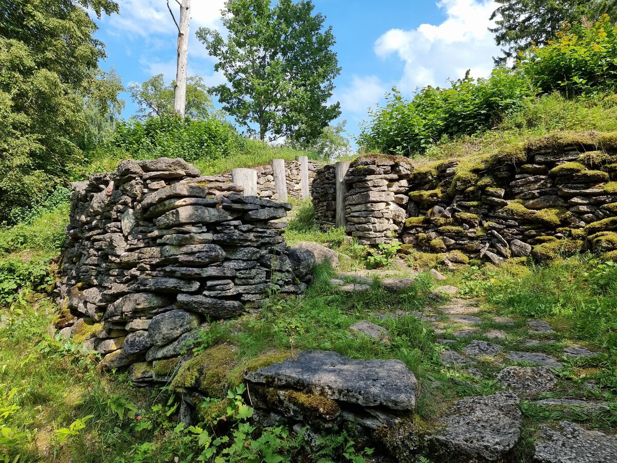 Viduslaiku pils drupas, kuras ietver arī lielu baznīcu. Šī vienjoma baznīca uzcelta 1260. gadā romānikas-gotikas stilā. Nostāstu vieta.