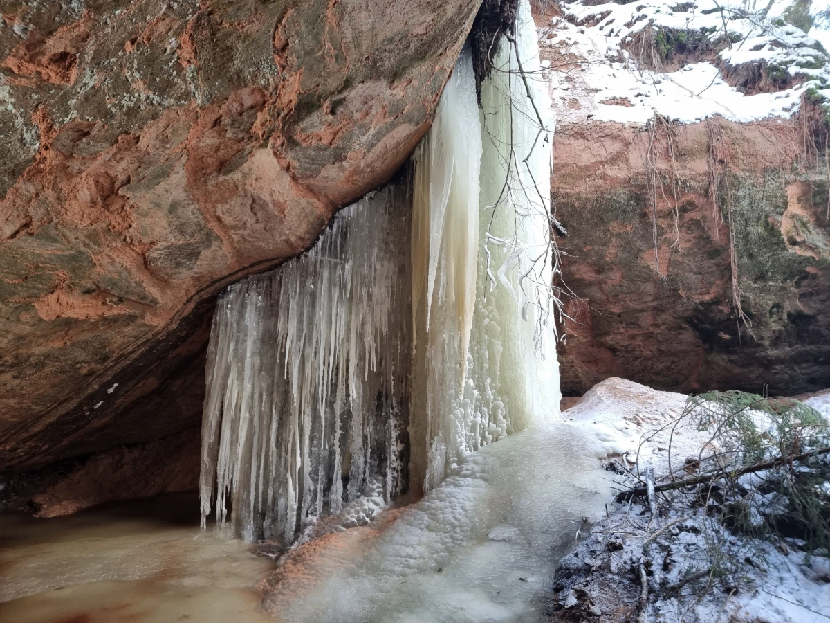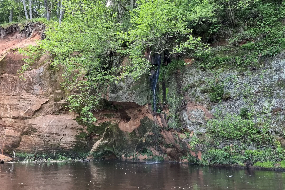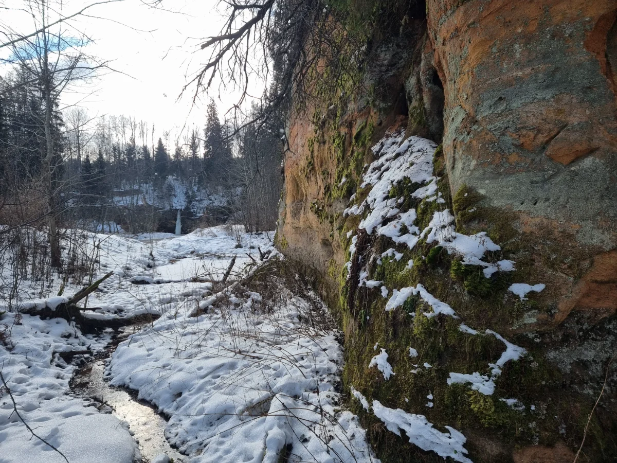 Arī no takas daudzviet paveras skaisti skati uz Krauļukalna iezi. Jau drīz jānokāpj stāvā gravā — šeit plūst strautiņš, kas, sasniedzot klints malu, vertikāli krīt tieši Braslā. Tas ir ap 6 metrus augstais Krauļukalna pirmais ūdenskritums — vasarā niecīga tērcīte, toties ziemā viens no skaistākajiem leduskritumiem Latvijā.