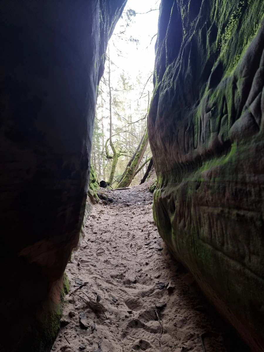 Krāšņās Līču klintis ziemeļos sākas ar aizu. Līču aiza ir viena no izteiksmīgākajām Latvijā – šaura, ar gandrīz vertikālām līdz 8 metrus augstām sienām un… jā, tā ir tikai nedaudz vairāk, kā 10 metrus gara.