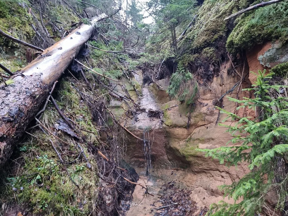 4,7 metrus augsts ūdenskritums, kuru šobrīd (2025) daļēji aizsedz augsnes noslīdenis un koka stumbrs. Ūdens tajā plūst reti.