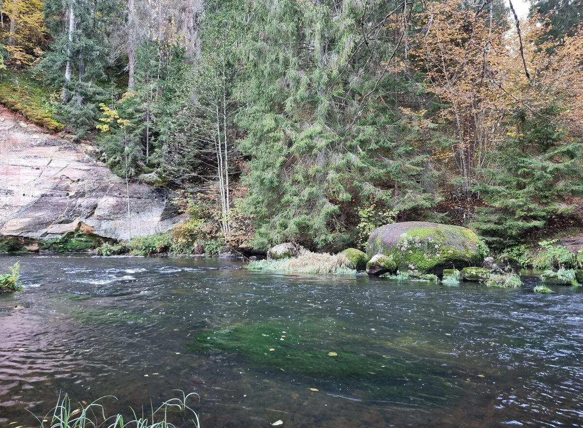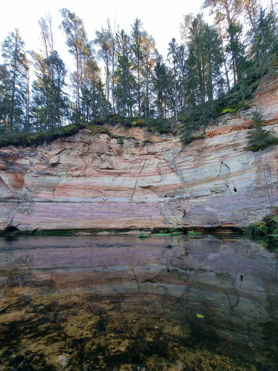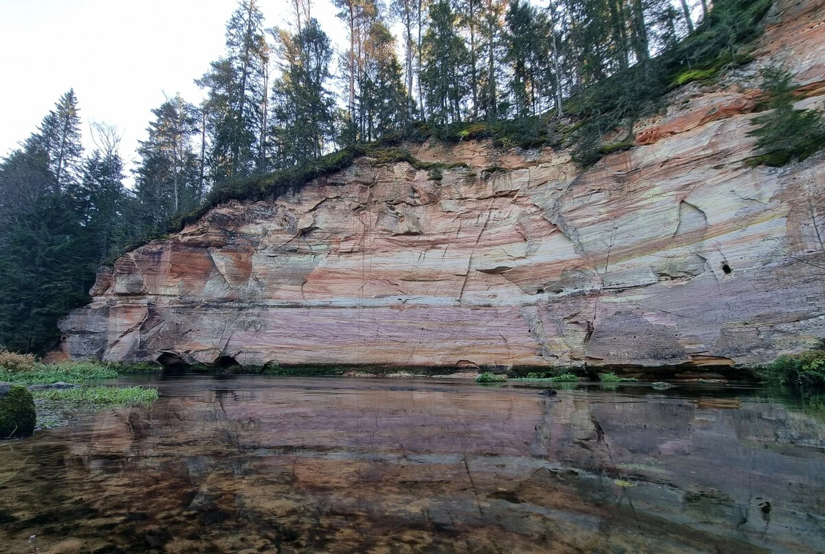 Apmēram vienu kilometru garais gājiens no autostāvvietas pamazām ieved aizvien krāšņākā skujkoku mežā, dziļajā Ahjas upes kanjonā. Vispirms paejam garām Mazajai Taevaskodai – skaista klints! Jau drīz skatam paveras pļava, kuru plašā lokā ieskauj milzu klints ar skaistām gaiši sārtām un dzeltenām smilšakmens slāņu līnijām.