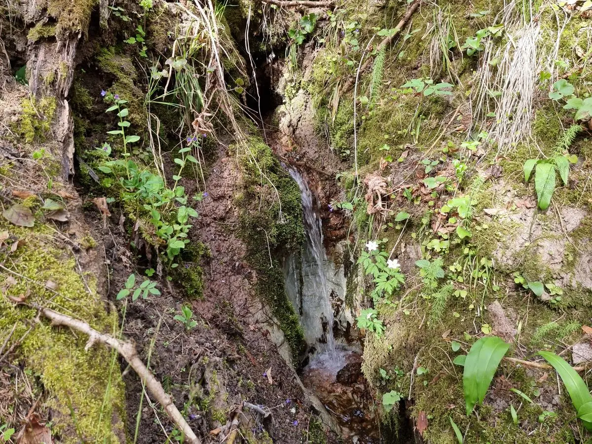 Lūrmaņu avota ūdenskritums, augšējā pakāpe. 2025. gada aprīlis. / Gatis Pāvils, CC BY-SA 4.0