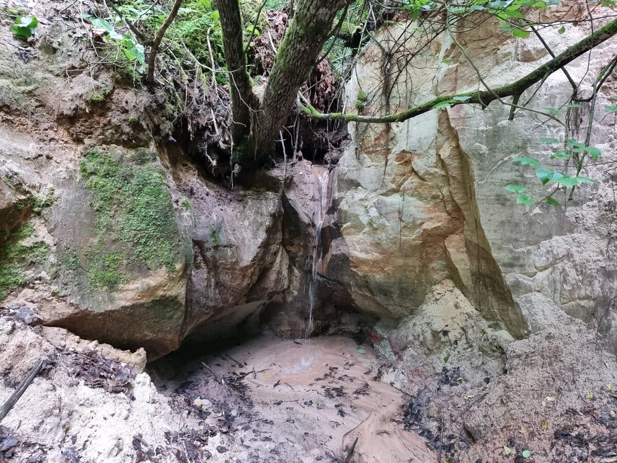 Paejot augšup gar gravas strautiņu ap 100 m no Gaujas skatam paveras mazs ūdenskritums – gravas strautiņš šeit krīt pāri Gaujas svītas smilšakmenim. Ja ūdens ir vairāk – tas krīt ar slaidu loku, kā no šļūtenes.