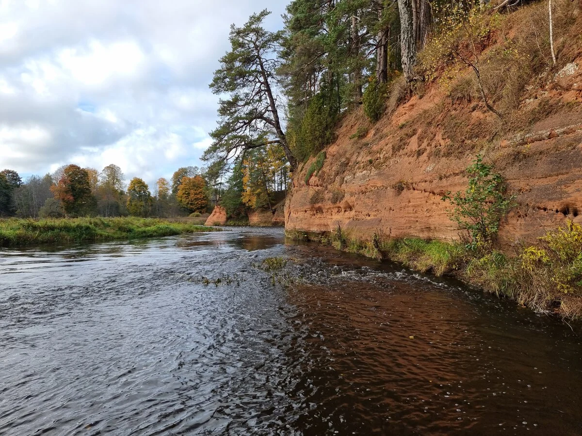 Pietraga Sarkanās klintis, skats no klinšu vidusdaļas. 2025. gada oktobris.