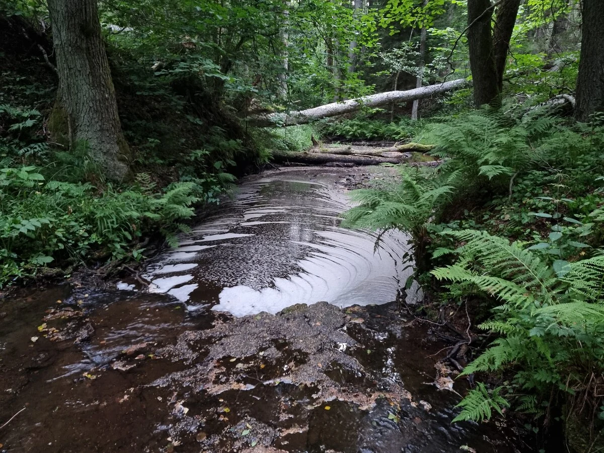 Krācītes konfigurācija vasarās rada interesantu efektu: ūdens tajā tiek saputots un lejpus krācītei veidojas putu “vēdekļi”.