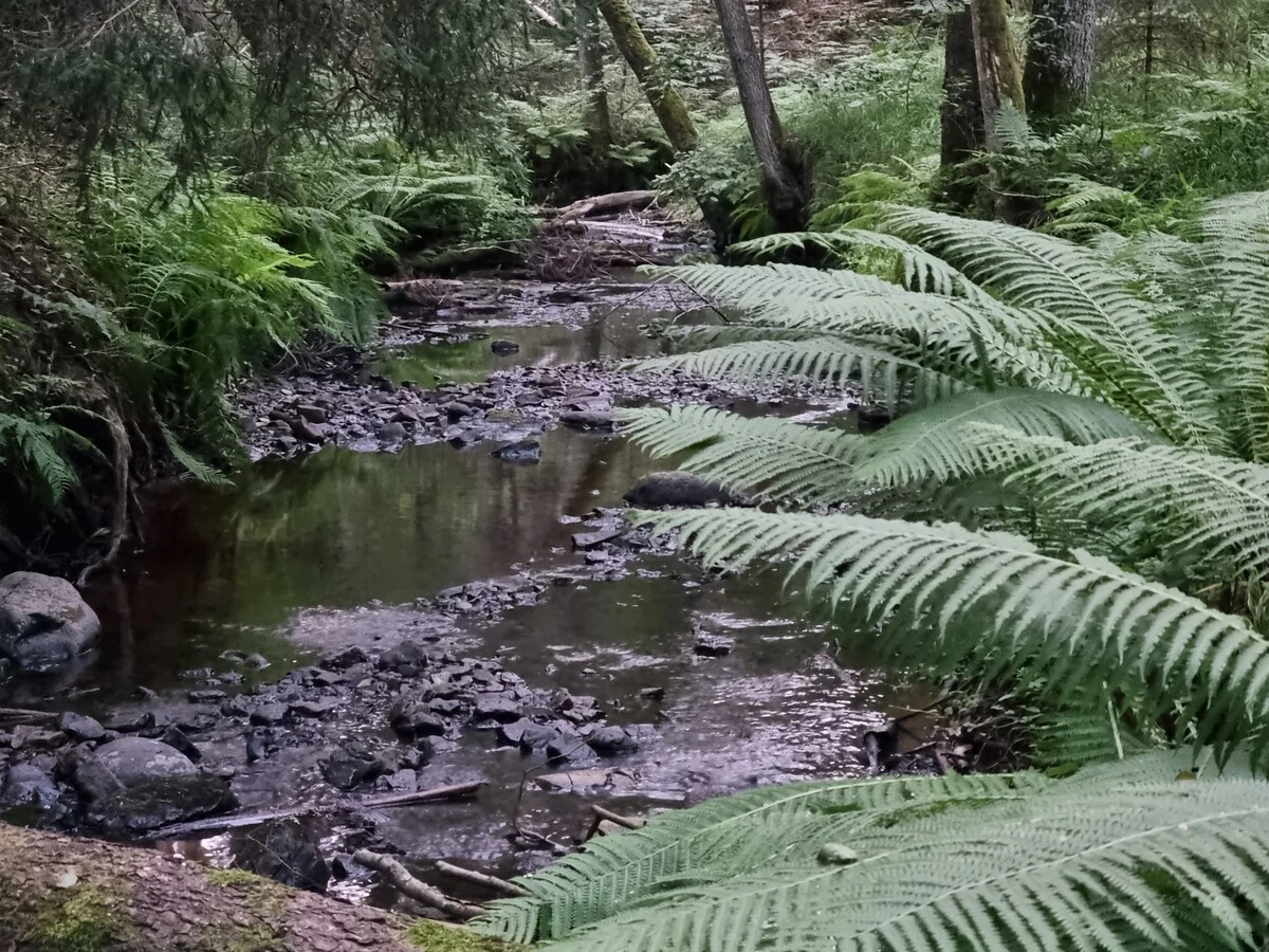 Tieši lejpus tiltiņam upītē ir salīdzinoši mazāk izskatīgais Pitragupes pirmais ūdenskritumiņš. Ejot tālāk gar upīti, ainava kļūst aizvien krāšņāka. Paejam garām Kukšupes dzirnavu drupām un (ja gadās iet vasaras vidū vai otrajā pusē) – papardes upītes krastos jau ir krietni virs galvas, tā, it kā gājējs būtu nokļuvis tropiskajā mežā.