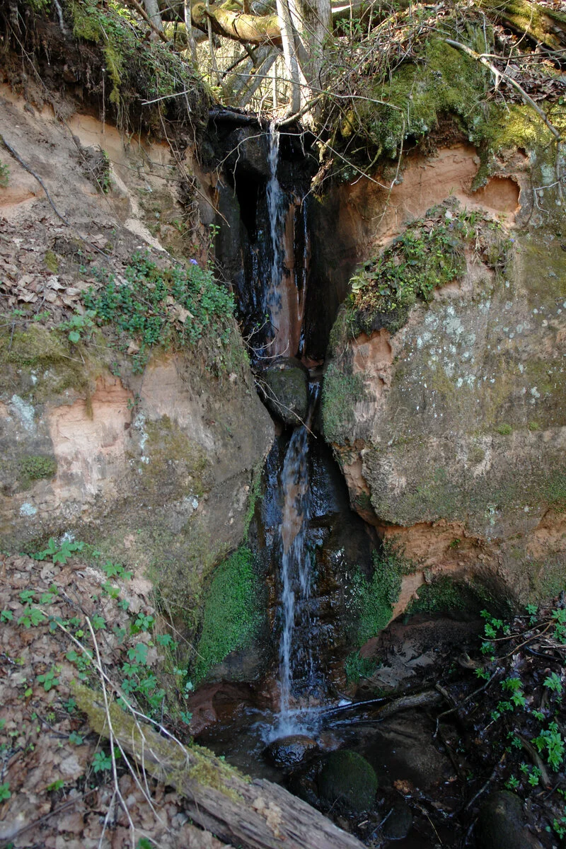 Rītupītes ūdenskrituma augšējā kaskāde 2008. gada aprīlī. Salīdzinot ar pirmo attēlu, redzams, kā mainījusies ūdenskrituma gultne./ Gatis Pāvils, CC BY-SA 4.0