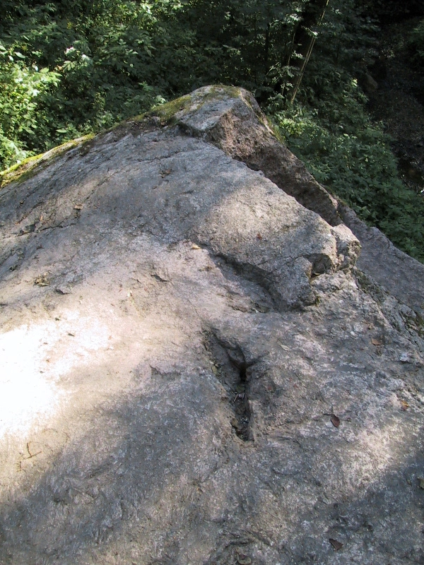 Rogāļu gravas stāvajā, kreisajā nogāzē netālu no Daugavas atrodas milzu akmens.