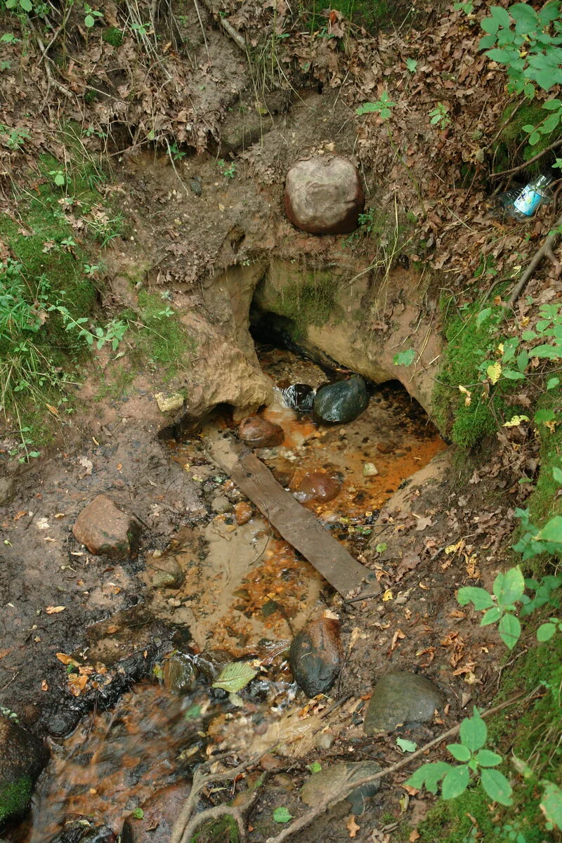 Spēcīgs avots, kurš izplūst no smilšakmens ieža līdzās Runtiņupes Lielajam akmenim.