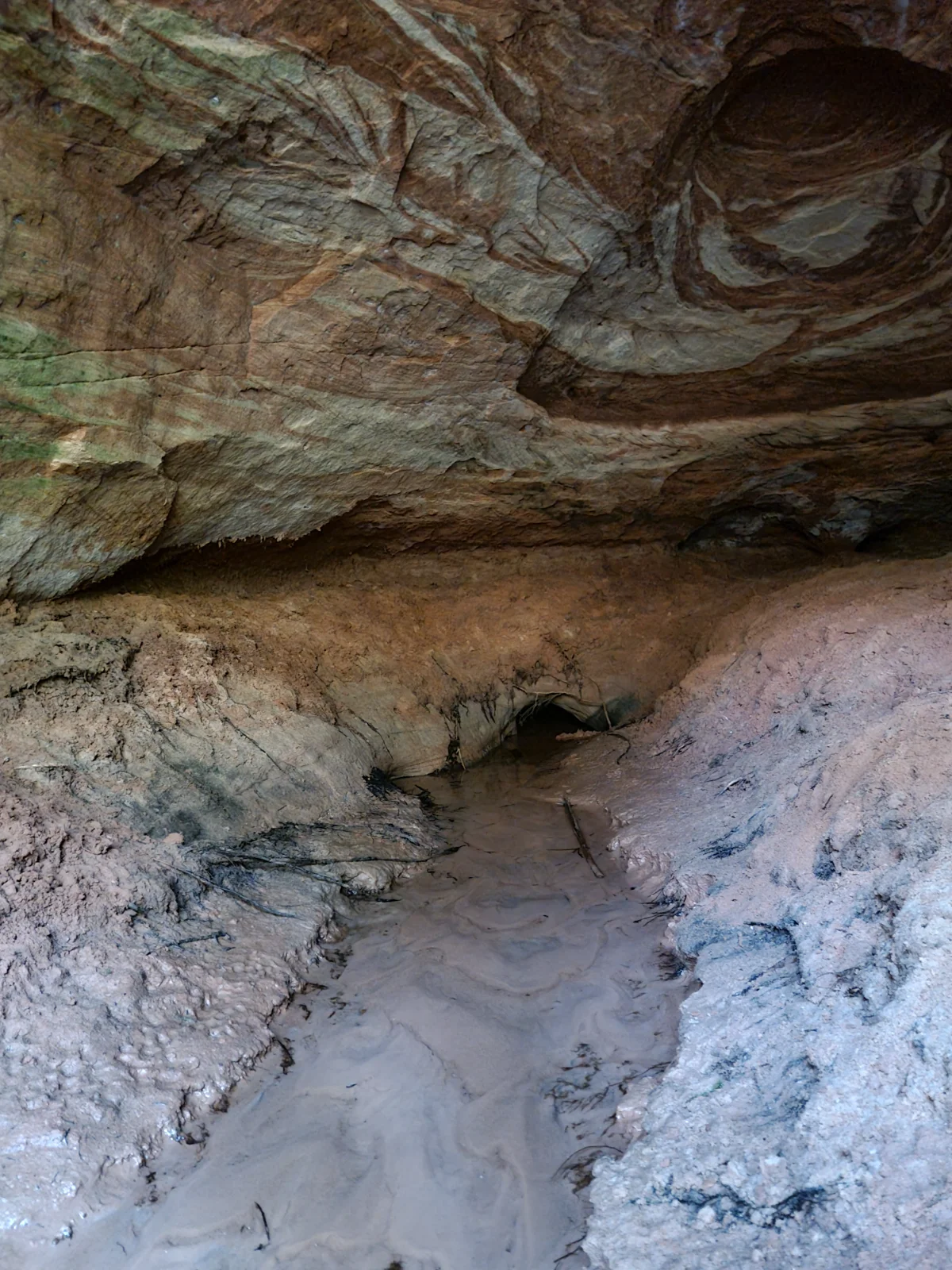 Vāļu Lielās alas lielākais krāšņums ir tās griesti – šeit atsedzas dažādu krāsu smilšakmens slāņi.