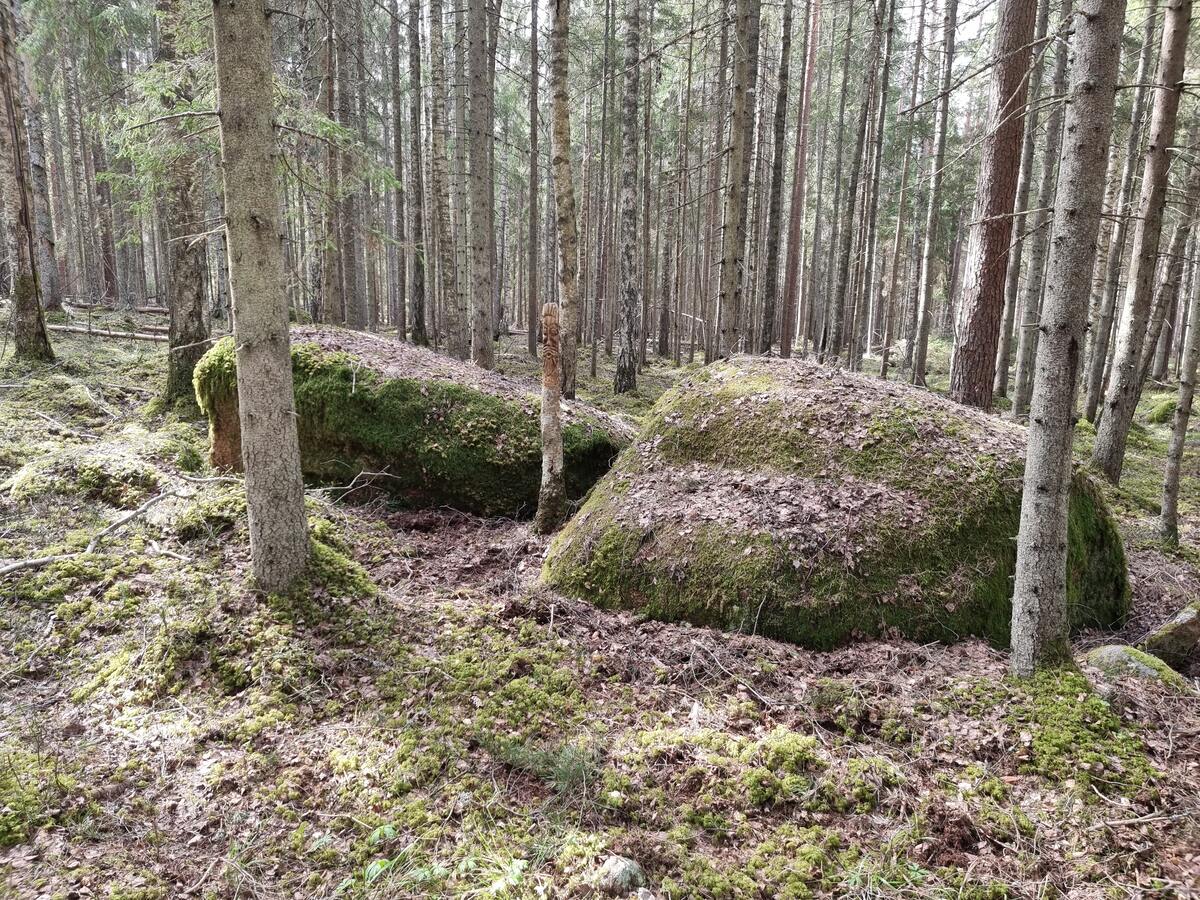 Velna kalva. Visdrīzāk, šajā vietā akmeņu krāvums ir postīts. 2025. gada aprīlis. / Gatis Pāvils, CC BY-SA 4.0
