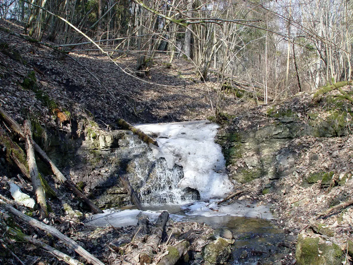 Daļu no Virsaišu ūdenskrituma vēl sedz ledus, 2003. gada marts. / Gatis Pāvils, CC BY-SA 4.0