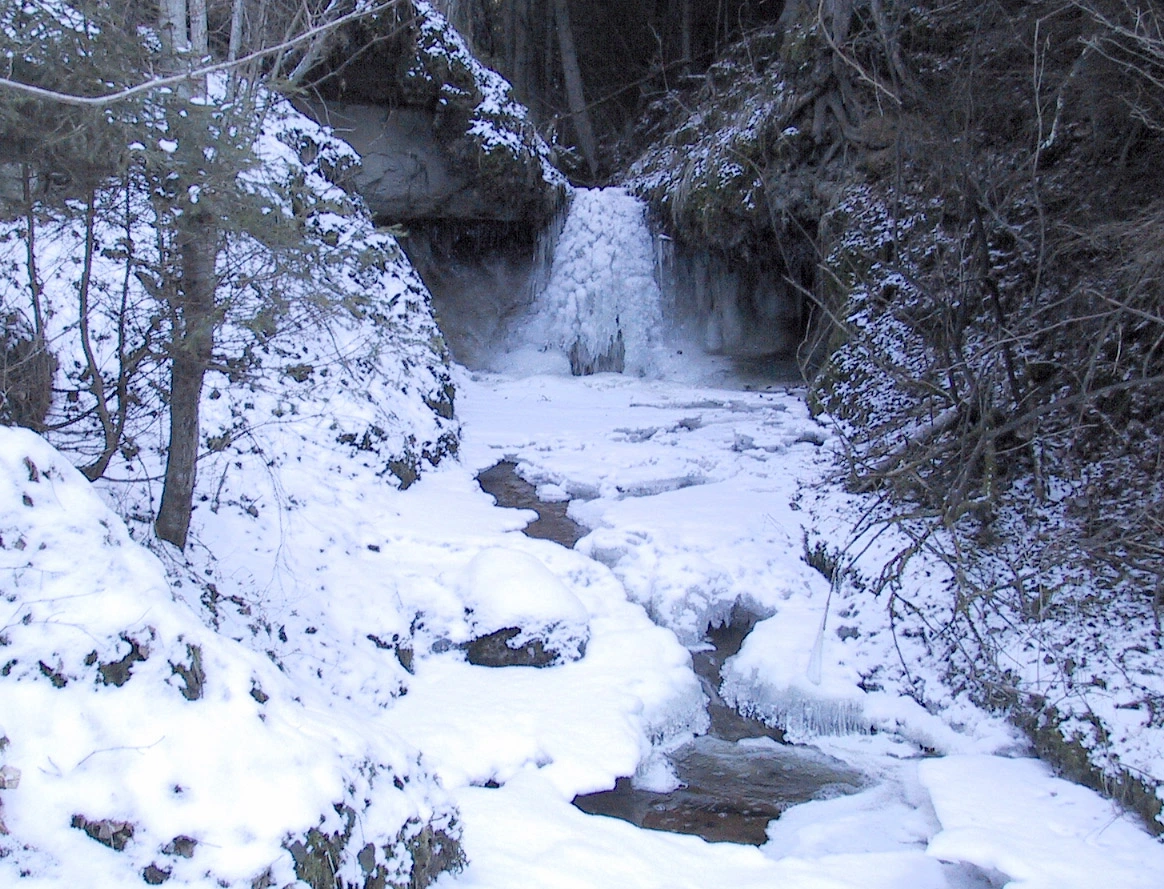 Ūdenskritumu veidojošais aleirolīts ir samērā mīksts, un nelielajam strautam izdevies tajā izveidot apmēram 15 m garu kanjonu. Dažus metrus zem ūdenskrituma straumē ir arī mazāka kāple.
