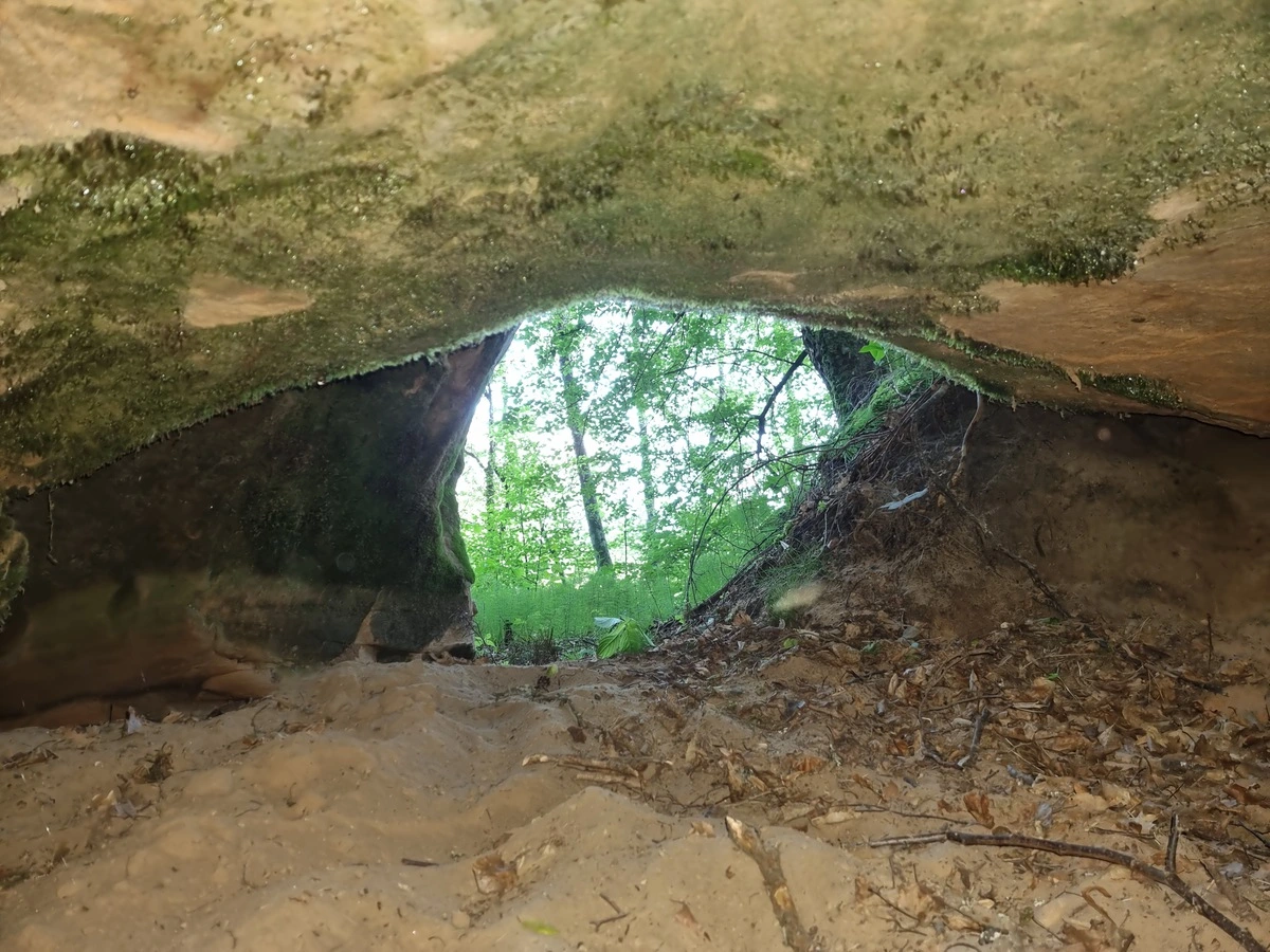 Zīļu ala – skats uz ārpusi. 2025. gada jūnijs. / Gatis Pāvils, CC BY-SA 4.0